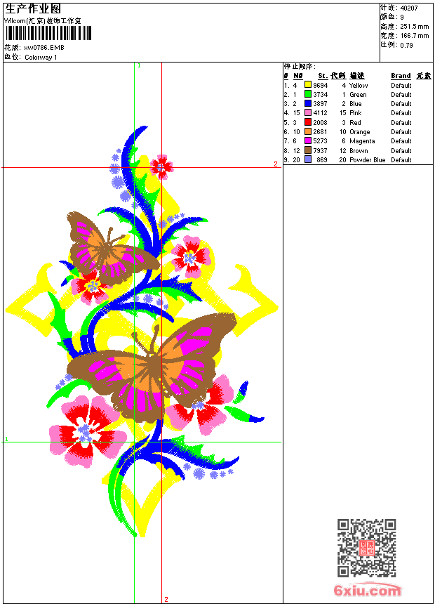 - emb花版参数: 大小:207.00 KB / 尺寸:167*252[毫米] / 针数:40207针 / 线色:9 / 格式:emb / 版本:9