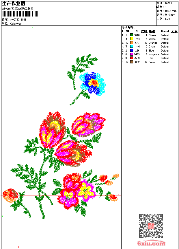 - 版带文件需绣花软件方可打开,可配色打印导出各种格式或直接上机绣。如无绣花软件可下载1:1模拟效果图。