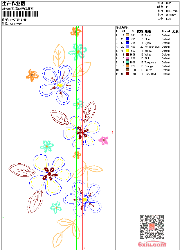 - 版带文件需绣花软件方可打开,可配色打印导出各种格式或直接上机绣。如无绣花软件可下载1:1模拟效果图。