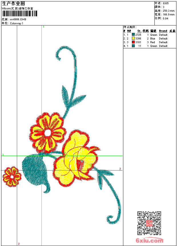 - emb花版参数: 大小:66.00 KB / 尺寸:167*250[毫米] / 针数:9305针 / 线色:3 / 格式:emb / 版本:9