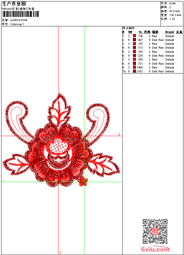 - emb花版参数: 大小:59.50 KB / 尺寸:116*94[毫米] / 针数:6144针 / 线色:2 / 格式:emb / 版本:9