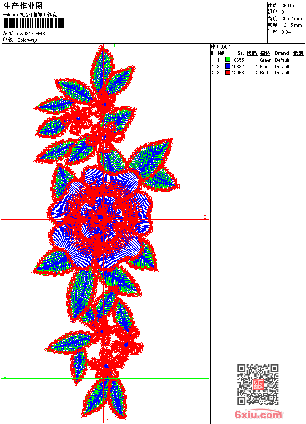 - emb花版参数: 大小:116.50 KB / 尺寸:122*305[毫米] / 针数:36415针 / 线色:3 / 格式:emb / 版本:9