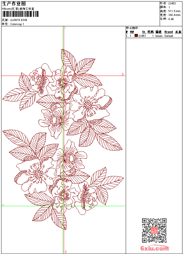 - emb花版参数: 大小:147.00 KB / 尺寸:343*512[毫米] / 针数:23453针 / 线色:1 / 格式:emb / 版本:9