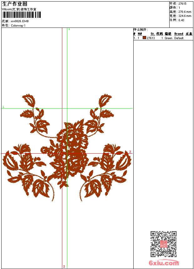 - emb花版参数: 大小:121.50 KB / 尺寸:325*271[毫米] / 针数:27615针 / 线色:1 / 格式:emb / 版本:9
