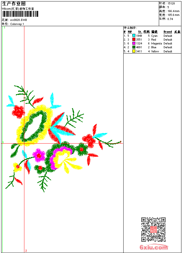 - emb花版参数: 大小:74.50 KB / 尺寸:186*166[毫米] / 针数:15128针 / 线色:5 / 格式:emb / 版本:9