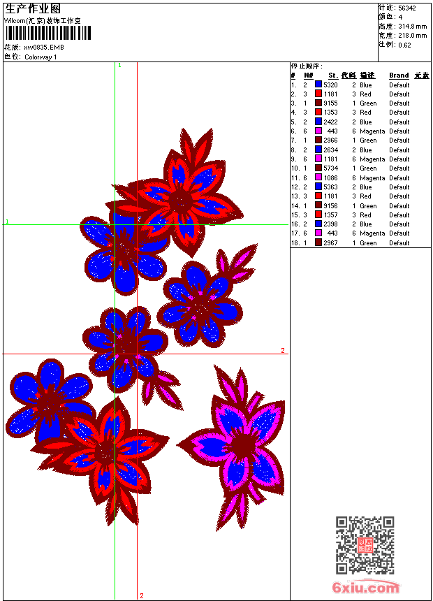 - emb花版参数: 大小:297.00 KB / 尺寸:218*315[毫米] / 针数:56342针 / 线色:4 / 格式:emb / 版本:9