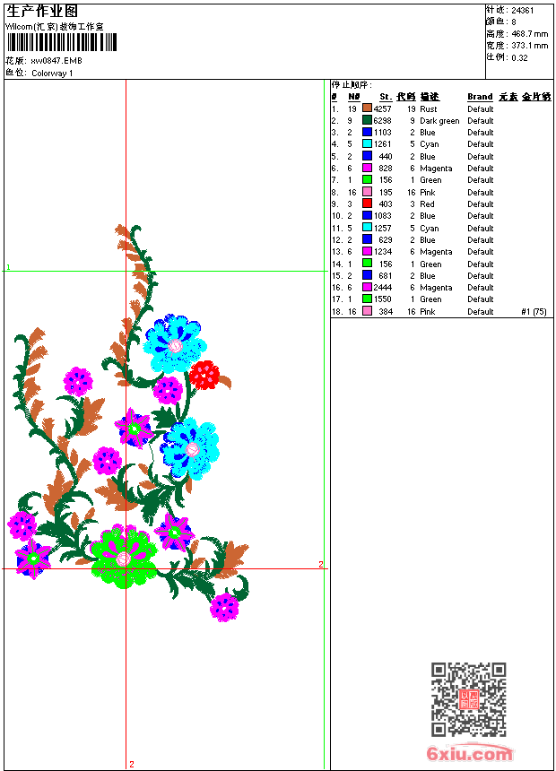 - emb花版参数: 大小:197.50 KB / 尺寸:373*469[毫米] / 针数:24361针 / 线色:8 / 格式:emb / 版本:9