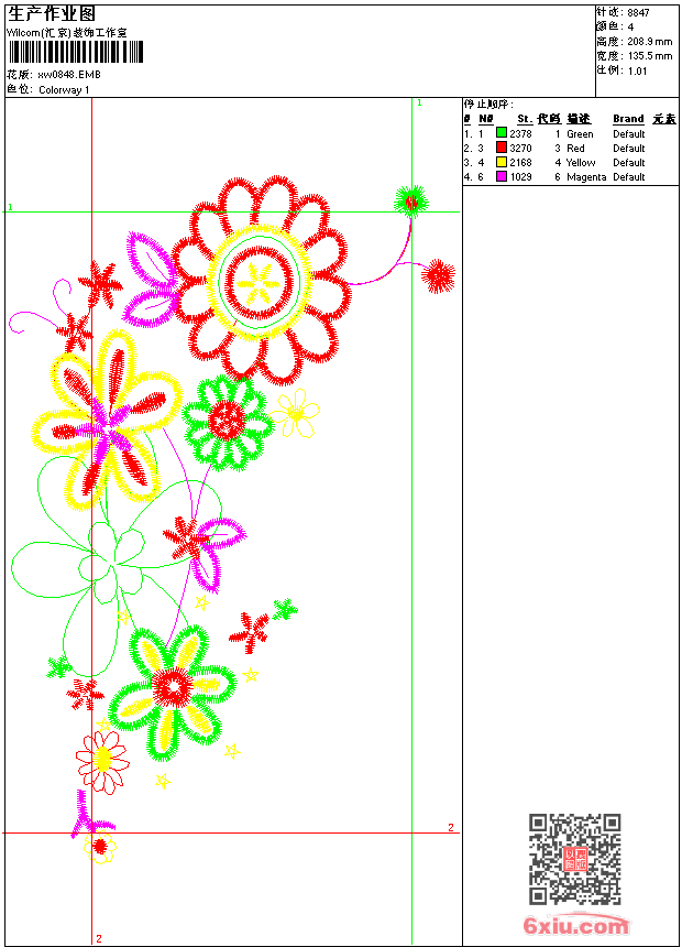 - emb花版参数: 大小:104.50 KB / 尺寸:136*209[毫米] / 针数:8847针 / 线色:4 / 格式:emb / 版本:9