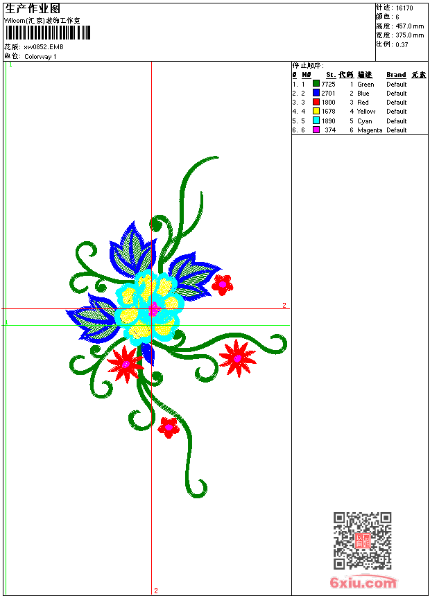 - emb花版参数: 大小:77.00 KB / 尺寸:375*457[毫米] / 针数:16170针 / 线色:6 / 格式:emb / 版本:9