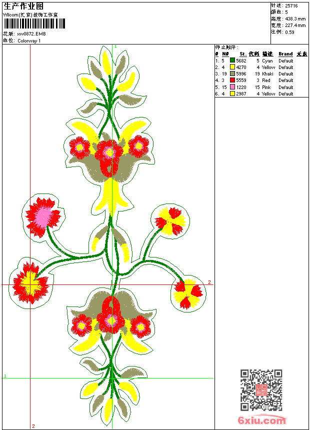 - emb花版参数: 大小:137.50 KB / 尺寸:227*438[毫米] / 针数:25716针 / 线色:5 / 格式:emb / 版本:9