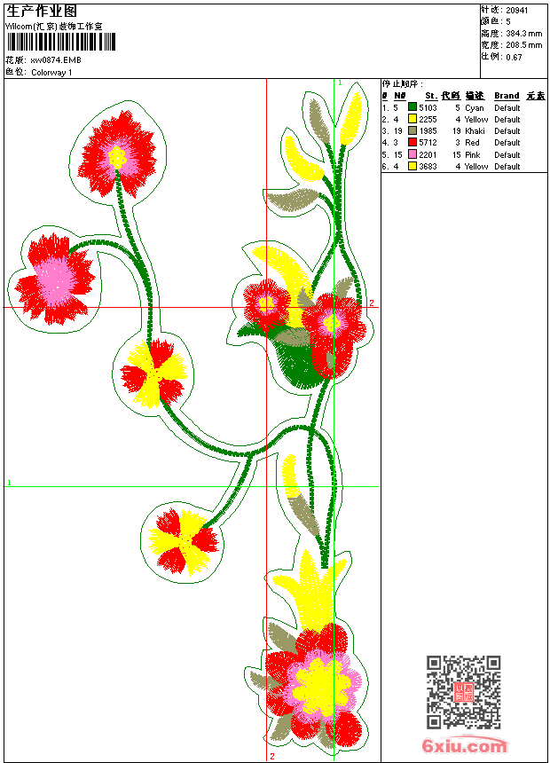 - emb花版参数: 大小:115.50 KB / 尺寸:208*384[毫米] / 针数:20941针 / 线色:5 / 格式:emb / 版本:9