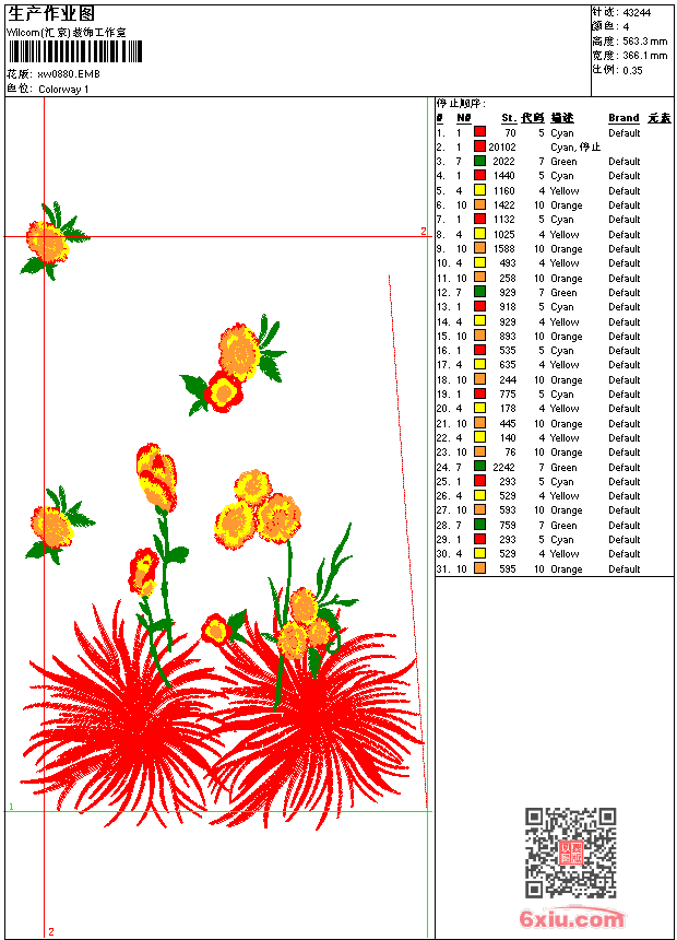 - emb花版参数: 大小:286.00 KB / 尺寸:366*563[毫米] / 针数:43244针 / 线色:4 / 格式:emb / 版本:9