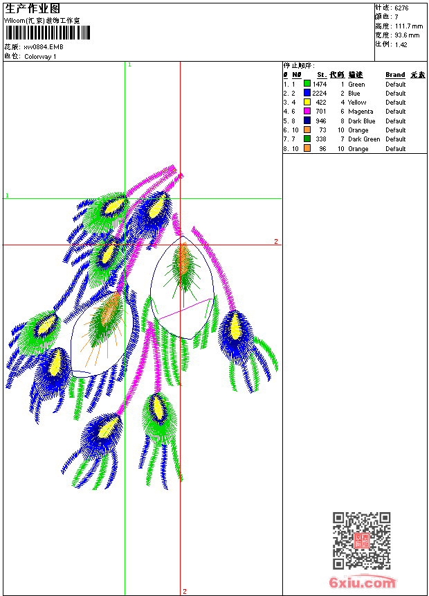 - emb花版参数: 大小:55.00 KB / 尺寸:94*112[毫米] / 针数:6276针 / 线色:7 / 格式:emb / 版本:9