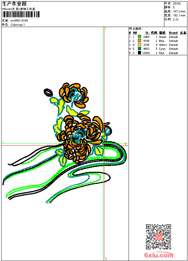 - emb花版参数: 大小:129.50 KB / 尺寸:192*187[毫米] / 针数:25338针 / 线色:5 / 格式:emb / 版本:9
