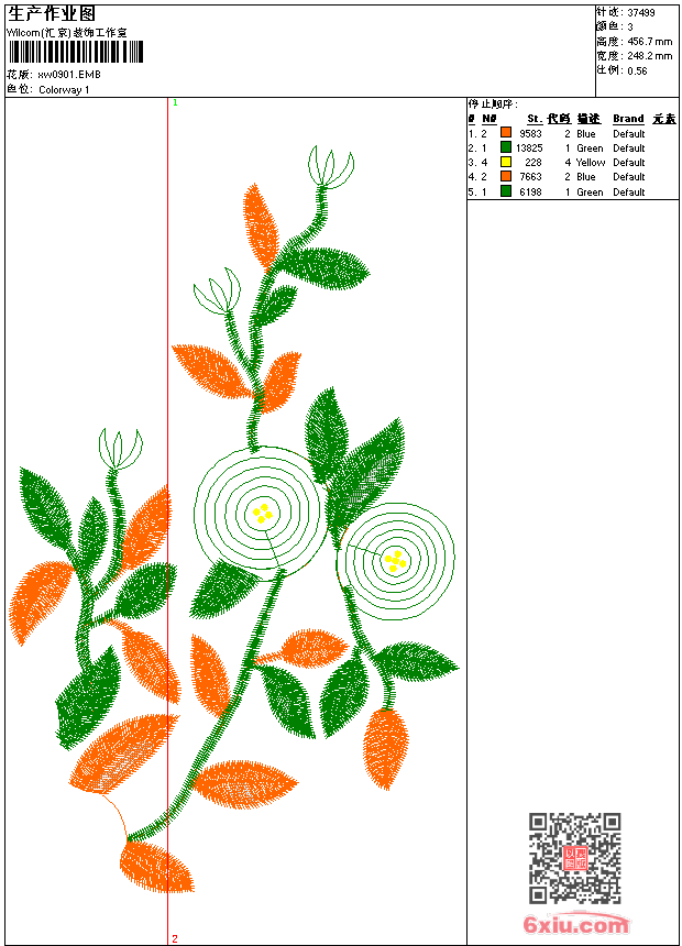 - emb花版参数: 大小:92.00 KB / 尺寸:248*457[毫米] / 针数:37499针 / 线色:3 / 格式:emb / 版本:9