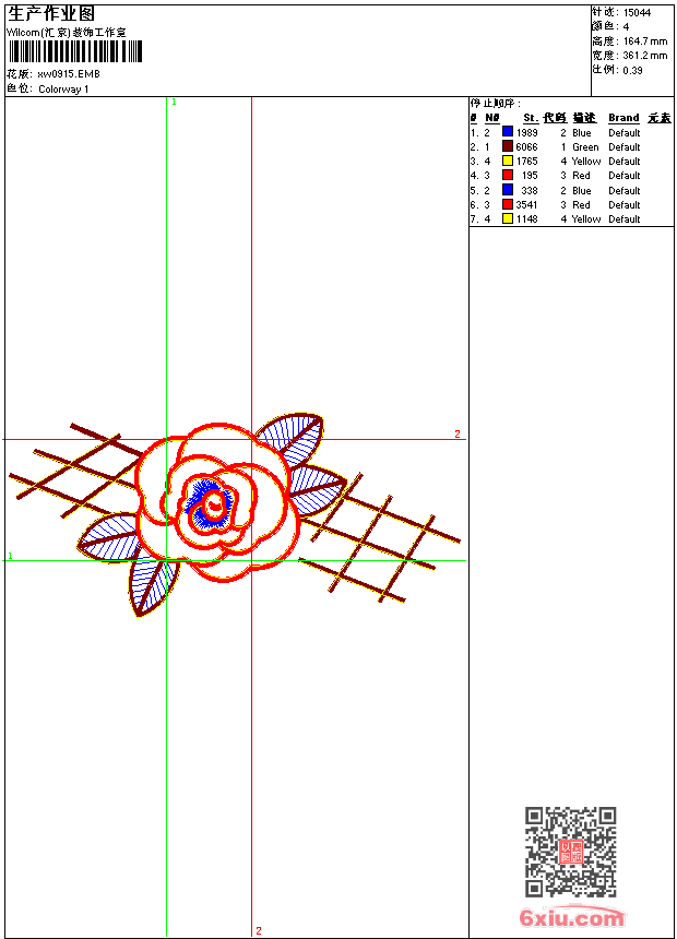 - emb花版参数: 大小:88.00 KB / 尺寸:361*165[毫米] / 针数:15044针 / 线色:4 / 格式:emb / 版本:9