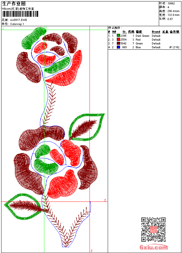 - 版带文件需绣花软件方可打开,可配色打印导出各种格式或直接上机绣。如无绣花软件可下载1:1模拟效果图。