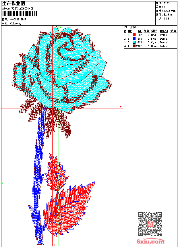 - 版带文件需绣花软件方可打开,可配色打印导出各种格式或直接上机绣。如无绣花软件可下载1:1模拟效果图。