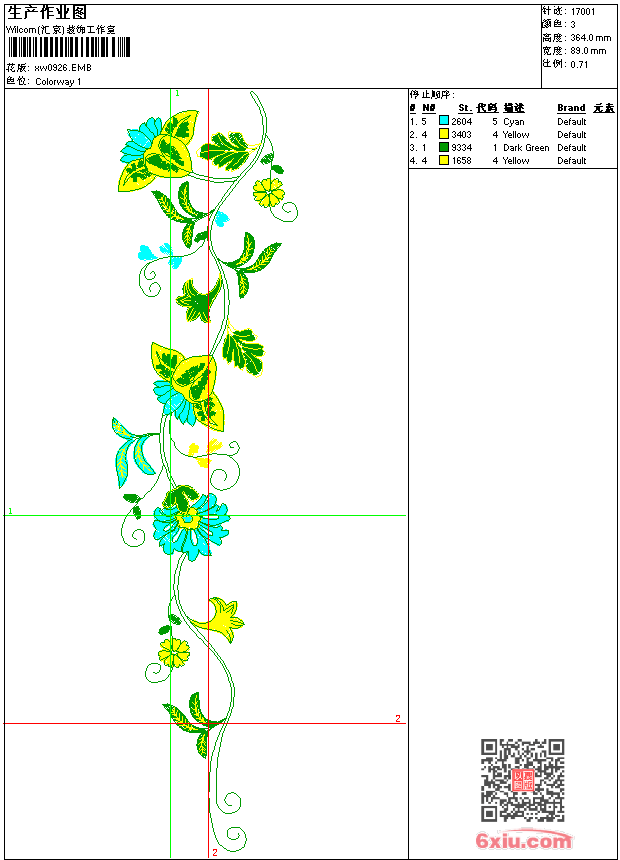 - emb花版参数: 大小:101.50 KB / 尺寸:89*364[毫米] / 针数:17001针 / 线色:3 / 格式:emb / 版本:9