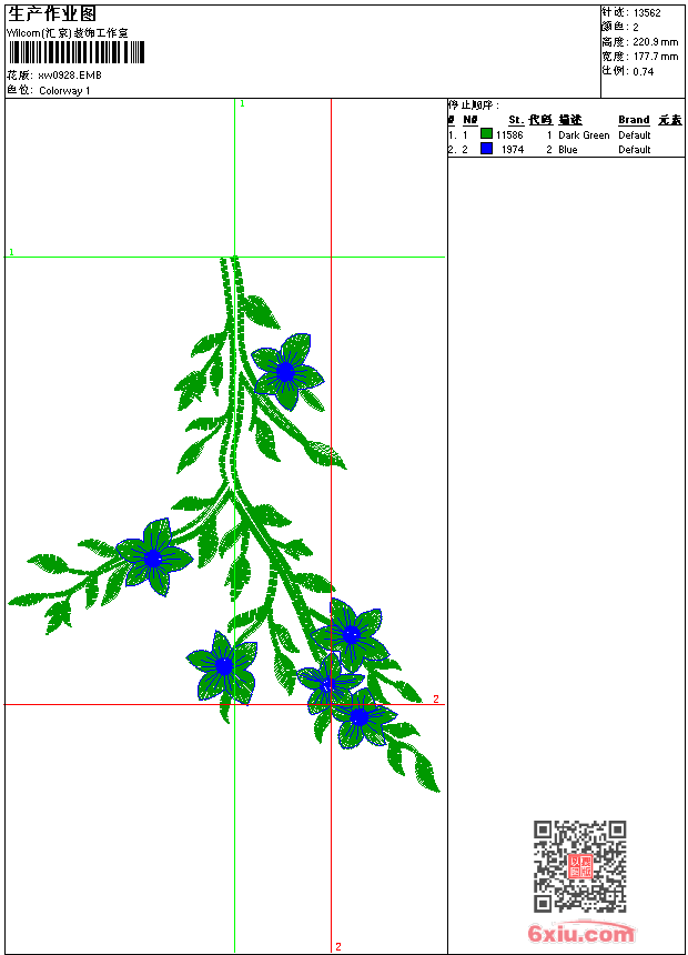 - emb花版参数: 大小:78.00 KB / 尺寸:178*221[毫米] / 针数:13562针 / 线色:2 / 格式:emb / 版本:9