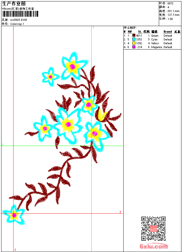 - emb花版参数: 大小:62.00 KB / 尺寸:138*201[毫米] / 针数:8872针 / 线色:4 / 格式:emb / 版本:9