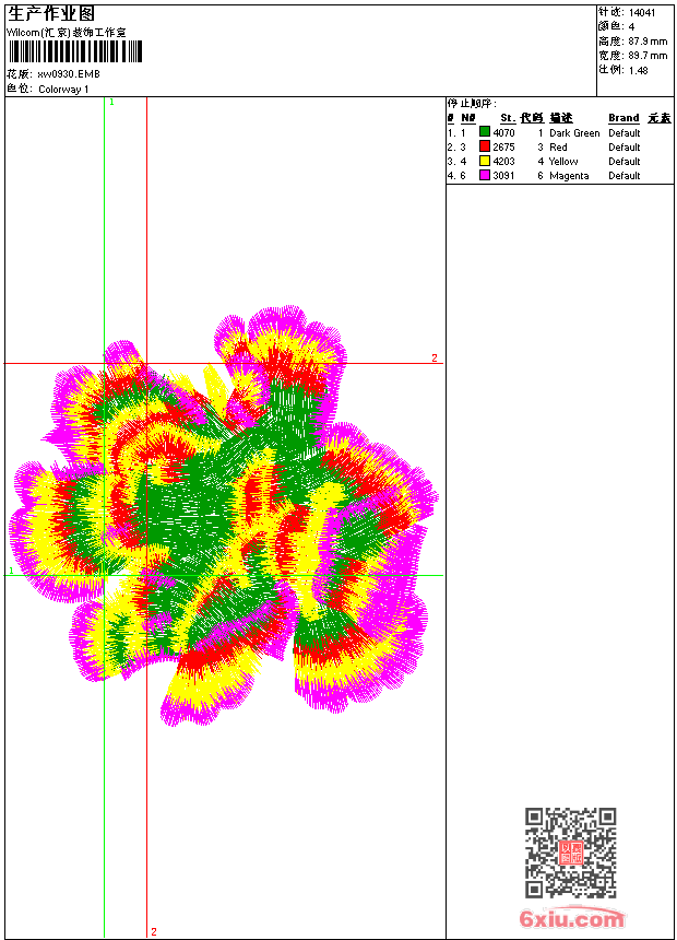 - emb花版参数: 大小:81.50 KB / 尺寸:90*88[毫米] / 针数:14041针 / 线色:4 / 格式:emb / 版本:9