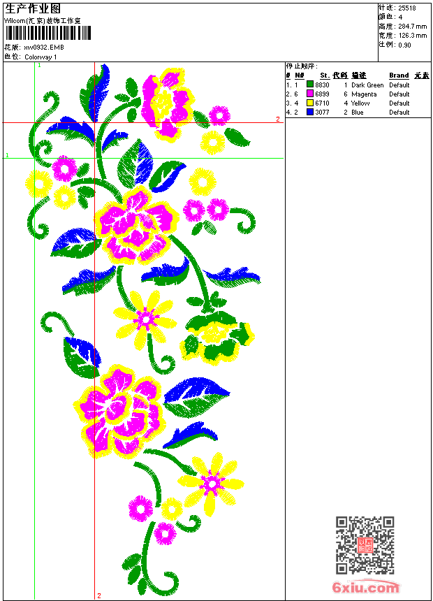 - emb花版参数: 大小:132.50 KB / 尺寸:126*285[毫米] / 针数:25518针 / 线色:4 / 格式:emb / 版本:9