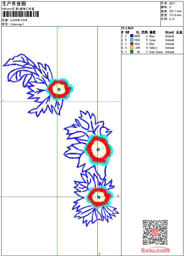 - emb花版参数: 大小:77.50 KB / 尺寸:174*257[毫米] / 针数:9071针 / 线色:5 / 格式:emb / 版本:9