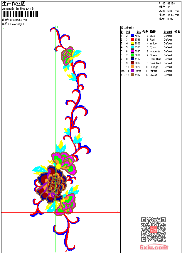- emb花版参数: 大小:212.00 KB / 尺寸:155*566[毫米] / 针数:46128针 / 线色:11 / 格式:emb / 版本:9