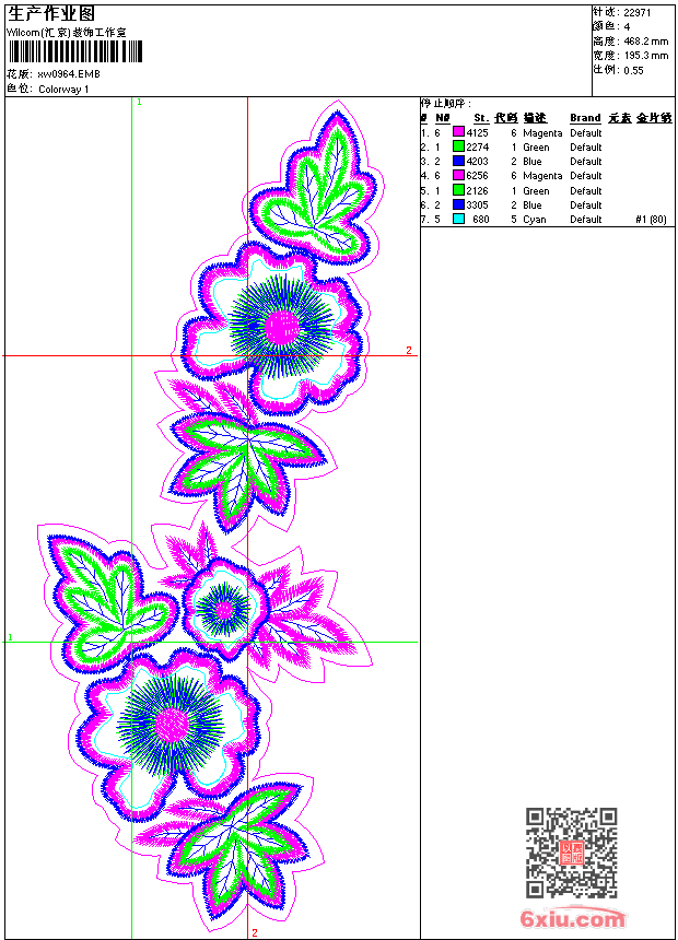 - emb花版参数: 大小:175.50 KB / 尺寸:195*468[毫米] / 针数:22971针 / 线色:4 / 格式:emb / 版本:9