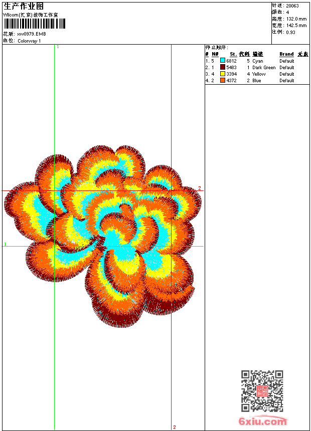 - emb花版参数: 大小:94.00 KB / 尺寸:143*132[毫米] / 针数:20063针 / 线色:4 / 格式:emb / 版本:9