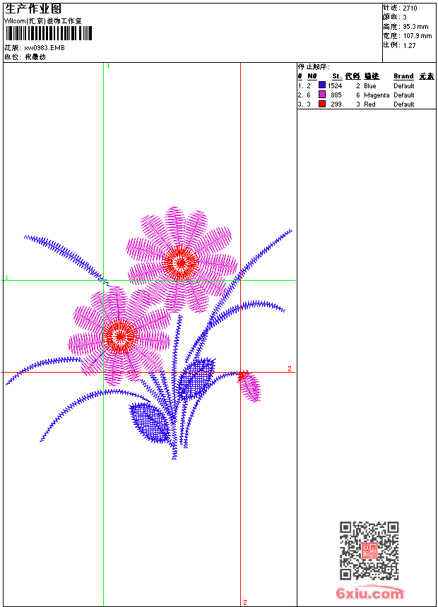 - emb花版参数: 大小:36.50 KB / 尺寸:108*95[毫米] / 针数:2710针 / 线色:3 / 格式:emb / 版本:9