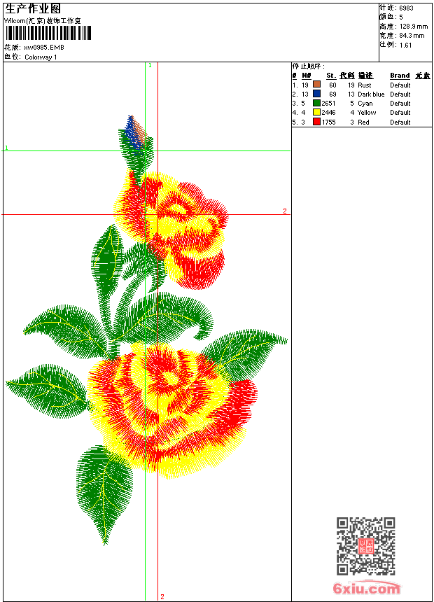 - emb花版参数: 大小:59.00 KB / 尺寸:84*129[毫米] / 针数:6983针 / 线色:5 / 格式:emb / 版本:9
