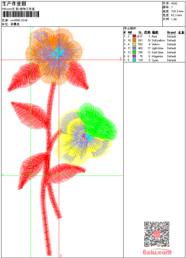 - 版带文件需绣花软件方可打开,可配色打印导出各种格式或直接上机绣。如无绣花软件可下载1:1模拟效果图。
