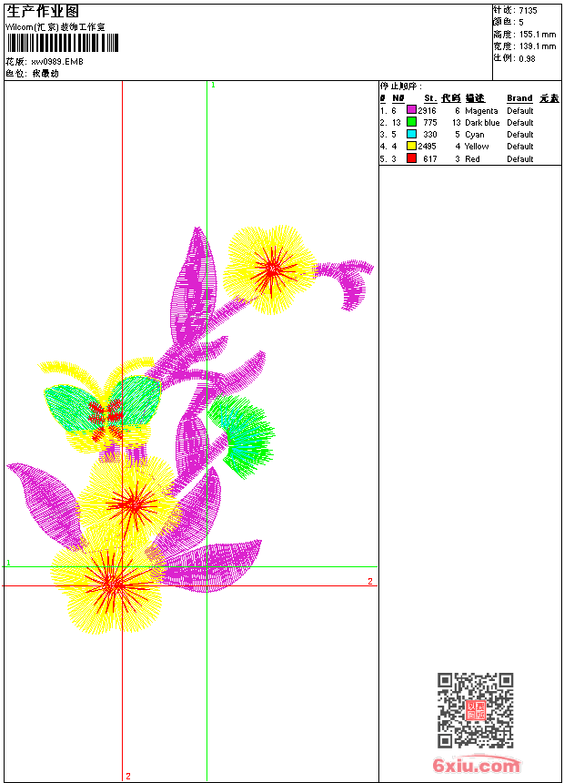 - emb花版参数: 大小:51.50 KB / 尺寸:139*155[毫米] / 针数:7135针 / 线色:5 / 格式:emb / 版本:9