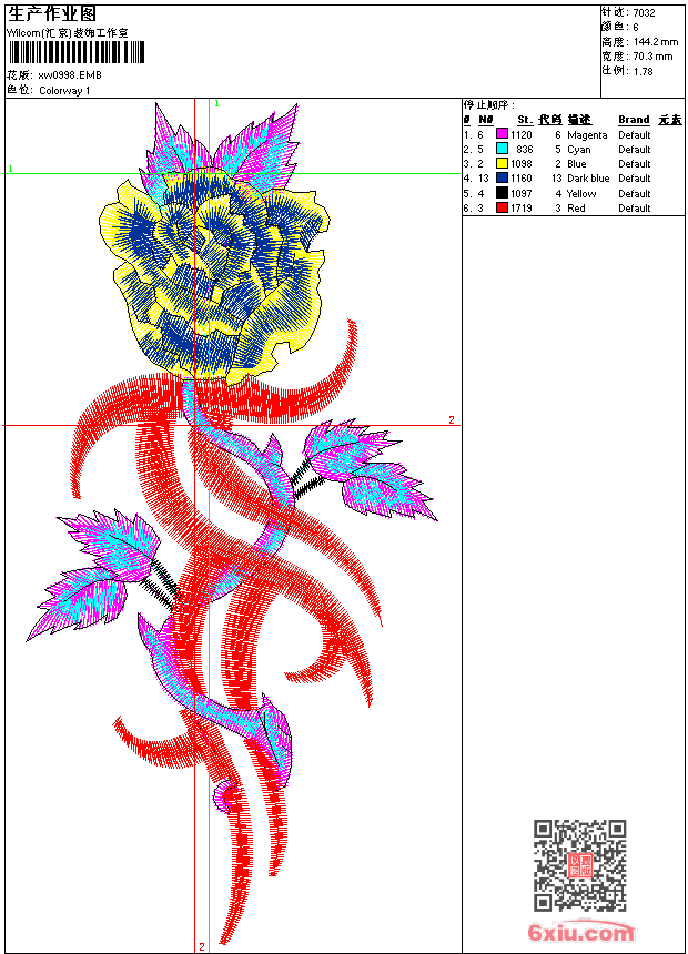 - 版带文件需绣花软件方可打开,可配色打印导出各种格式或直接上机绣。如无绣花软件可下载1:1模拟效果图。