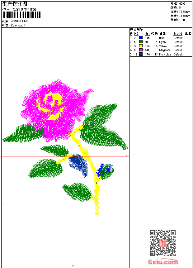 - 版带文件需绣花软件方可打开,可配色打印导出各种格式或直接上机绣。如无绣花软件可下载1:1模拟效果图。