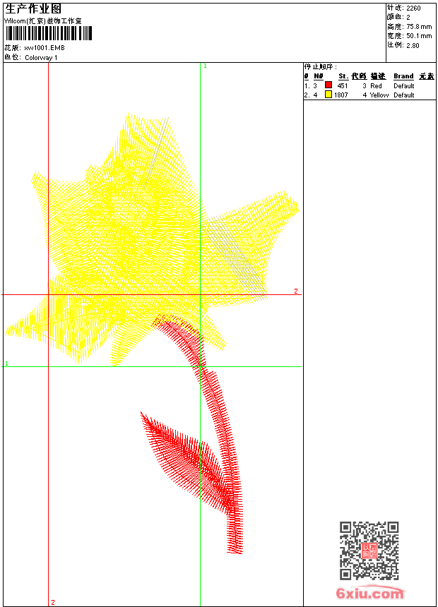 - emb花版参数: 大小:24.00 KB / 尺寸:50*76[毫米] / 针数:2260针 / 线色:2 / 格式:emb / 版本:9