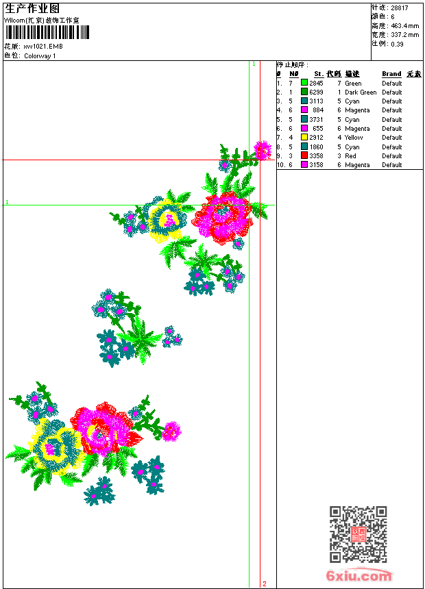 - emb花版参数: 大小:197.50 KB / 尺寸:337*463[毫米] / 针数:28817针 / 线色:6 / 格式:emb / 版本:9