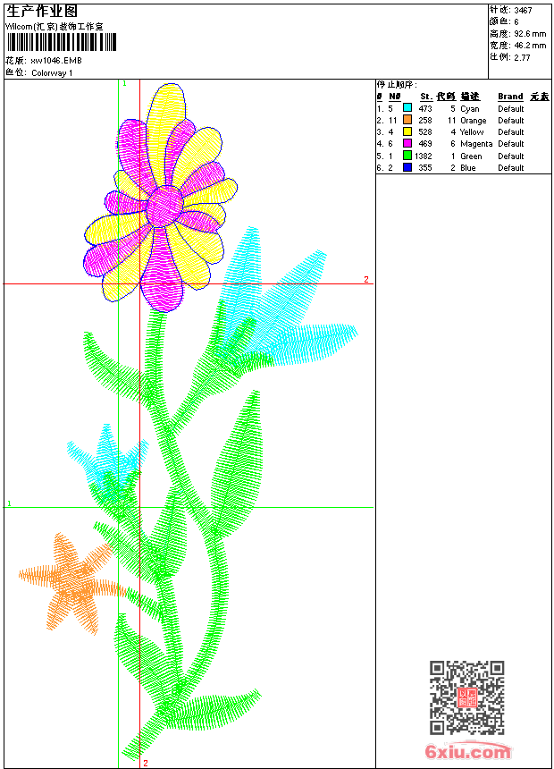 - emb花版参数: 大小:38.50 KB / 尺寸:46*93[毫米] / 针数:3467针 / 线色:6 / 格式:emb / 版本:9