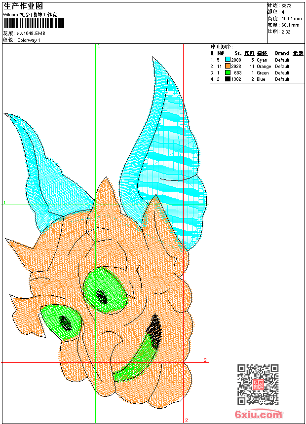 - 版带文件需绣花软件方可打开,可配色打印导出各种格式或直接上机绣。如无绣花软件可下载1:1模拟效果图。