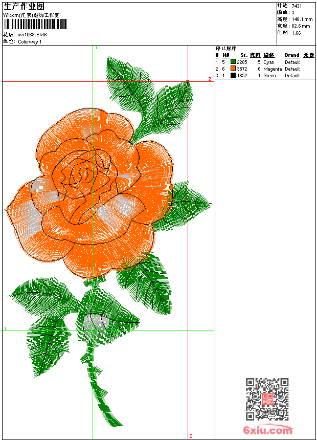 - 版带文件需绣花软件方可打开,可配色打印导出各种格式或直接上机绣。如无绣花软件可下载1:1模拟效果图。