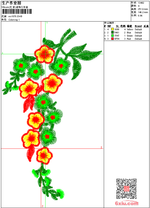 - emb花版参数: 大小:101.00 KB / 尺寸:146*252[毫米] / 针数:13482针 / 线色:4 / 格式:emb / 版本:9