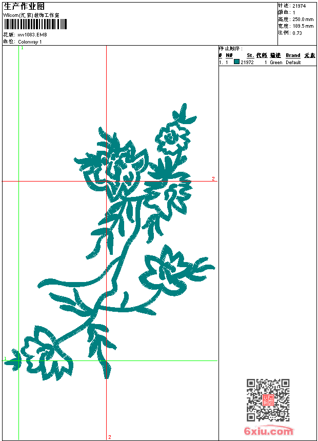 - emb花版参数: 大小:82.00 KB / 尺寸:189*250[毫米] / 针数:21974针 / 线色:1 / 格式:emb / 版本:9