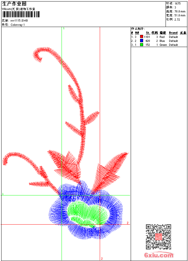 - emb花版参数: 大小:24.50 KB / 尺寸:52*79[毫米] / 针数:1675针 / 线色:3 / 格式:emb / 版本:9