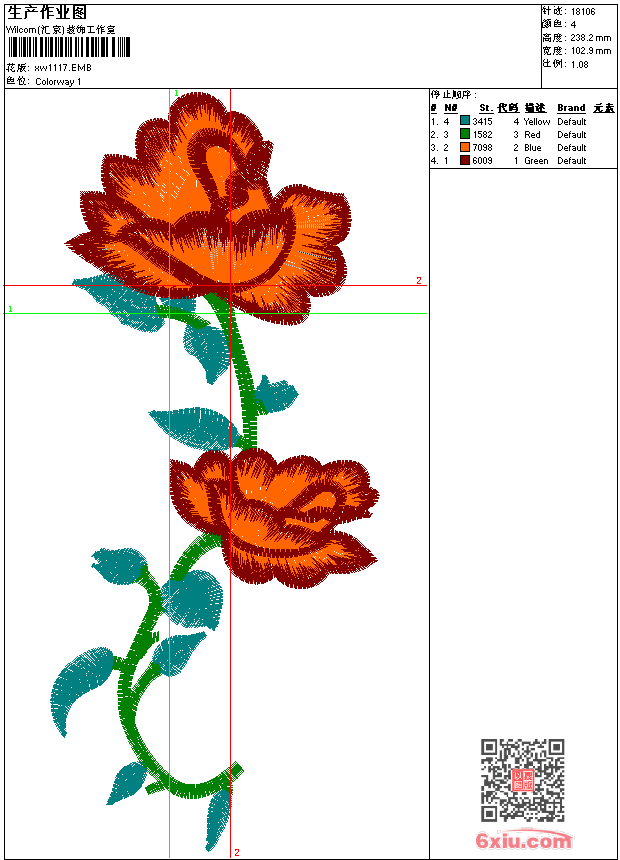 - 版带文件需绣花软件方可打开,可配色打印导出各种格式或直接上机绣。如无绣花软件可下载1:1模拟效果图。