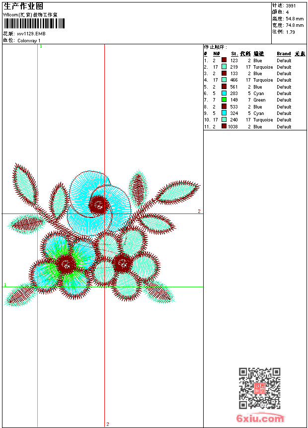 - 版带文件需绣花软件方可打开,可配色打印导出各种格式或直接上机绣。如无绣花软件可下载1:1模拟效果图。