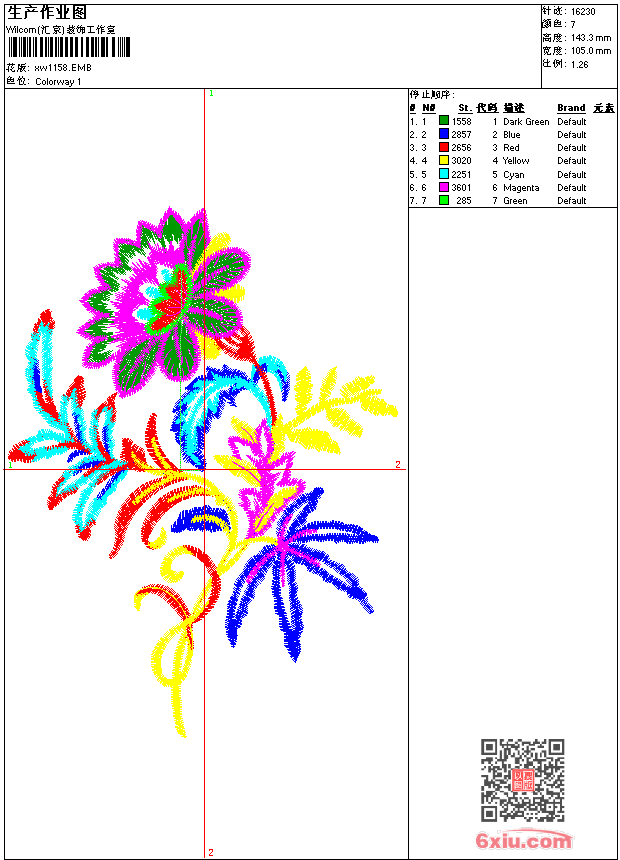 - emb花版参数: 大小:104.00 KB / 尺寸:105*143[毫米] / 针数:16230针 / 线色:7 / 格式:emb / 版本:9