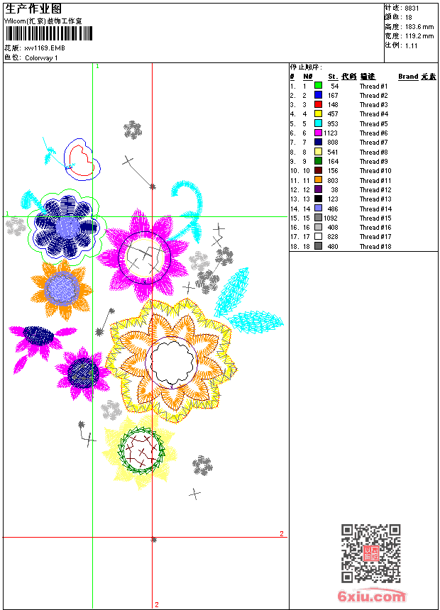 - emb花版参数: 大小:73.00 KB / 尺寸:119*184[毫米] / 针数:8831针 / 线色:18 / 格式:emb / 版本:9