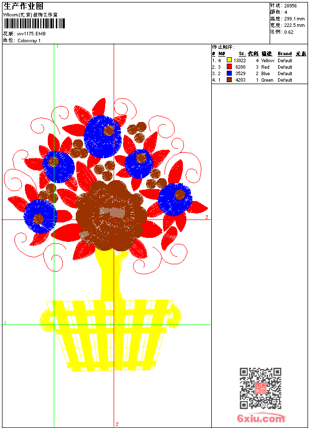 - emb花版参数: 大小:100.50 KB / 尺寸:222*299[毫米] / 针数:28956针 / 线色:4 / 格式:emb / 版本:9
